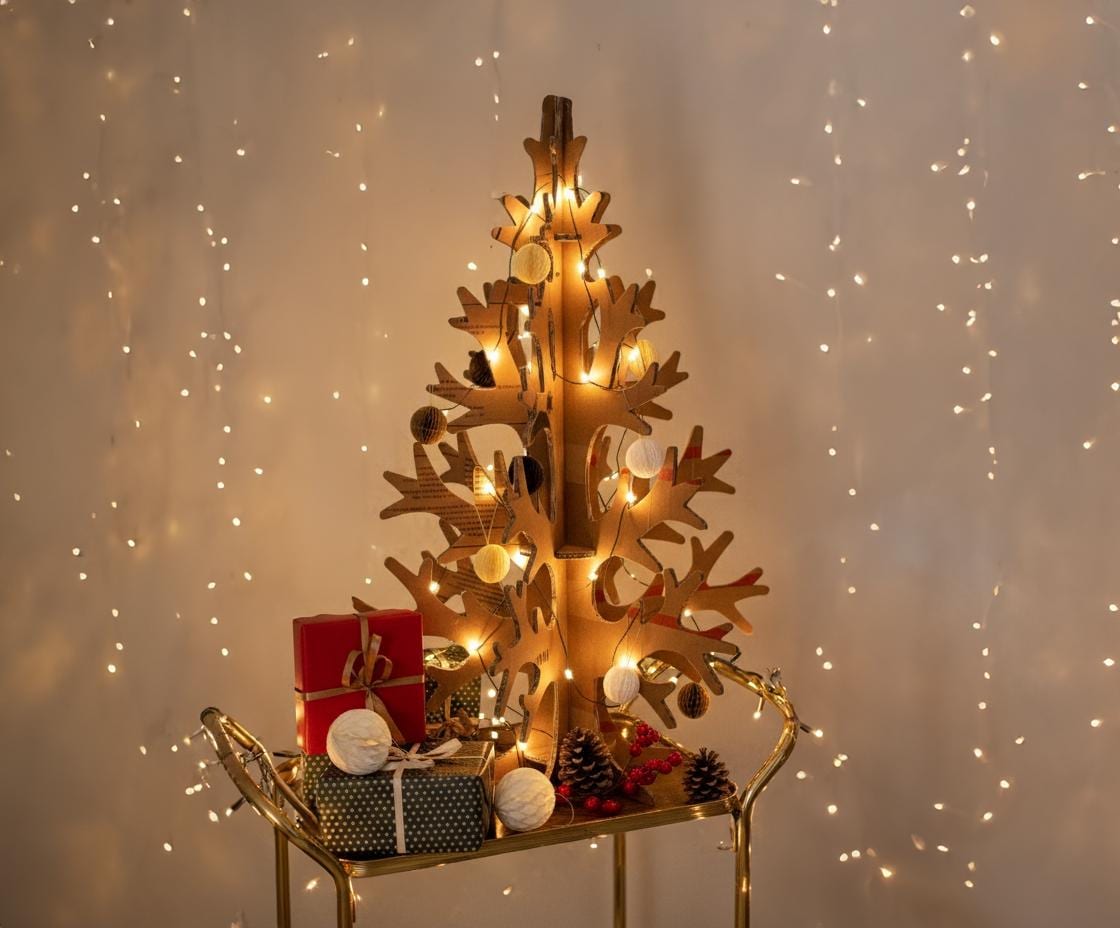 Celebrate the holidays sustainably and stylishly with this unique cardboard Christmas tree. Order yours today and enjoy a greener Christmas year after year!