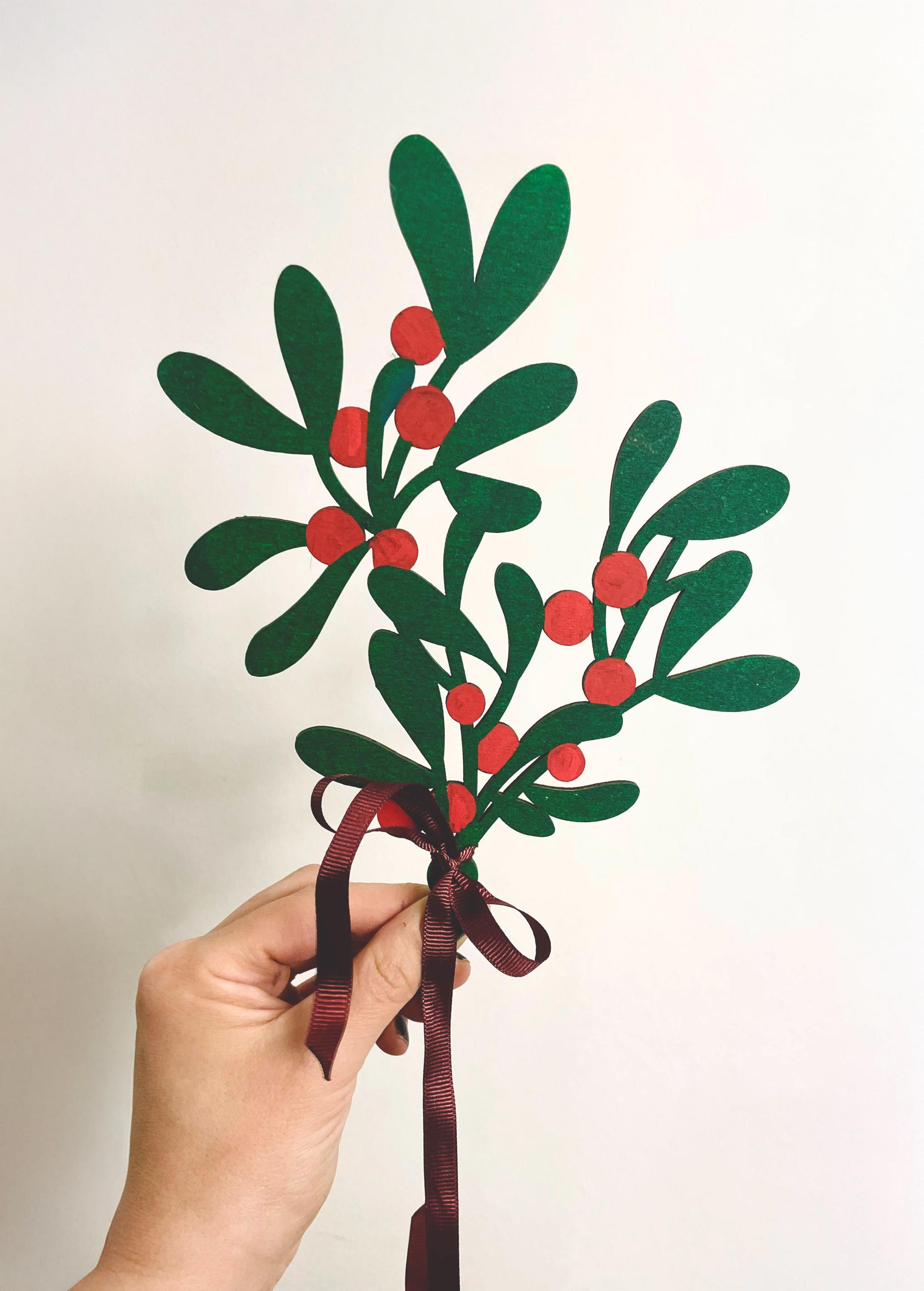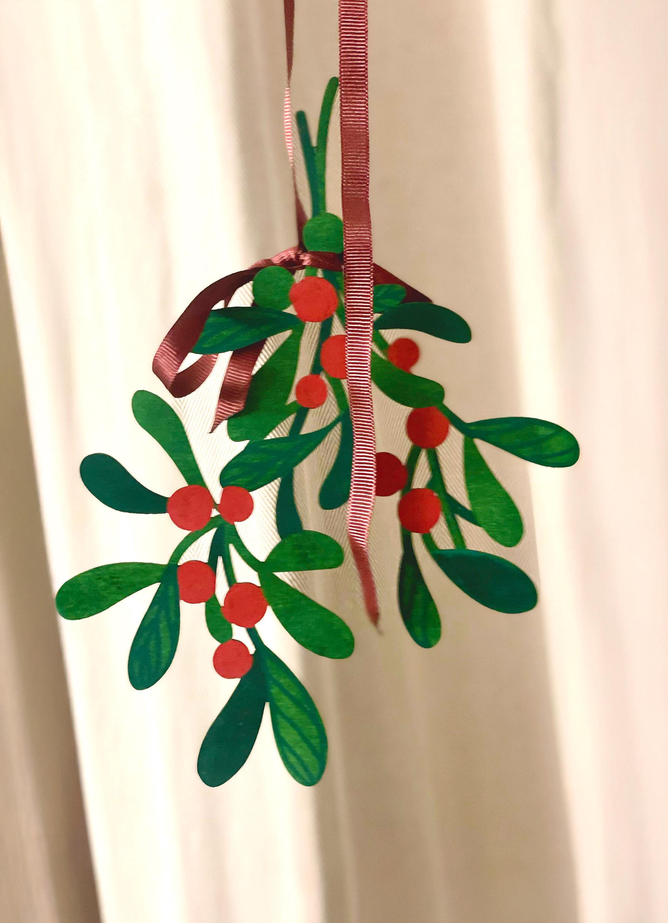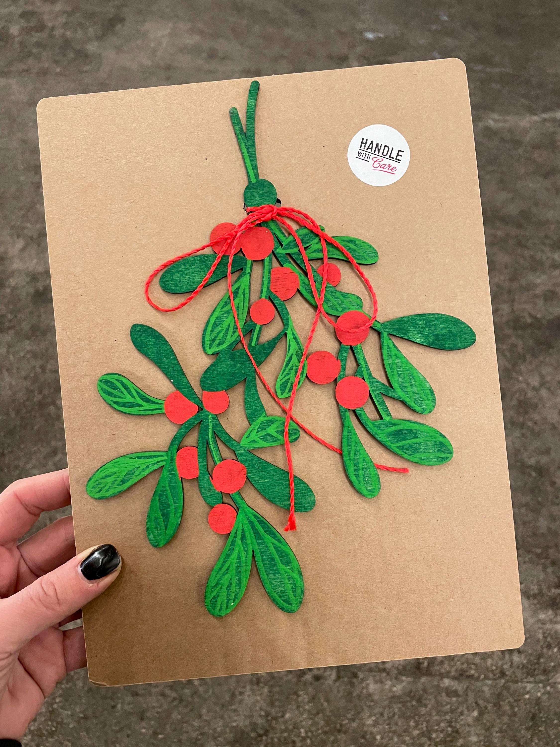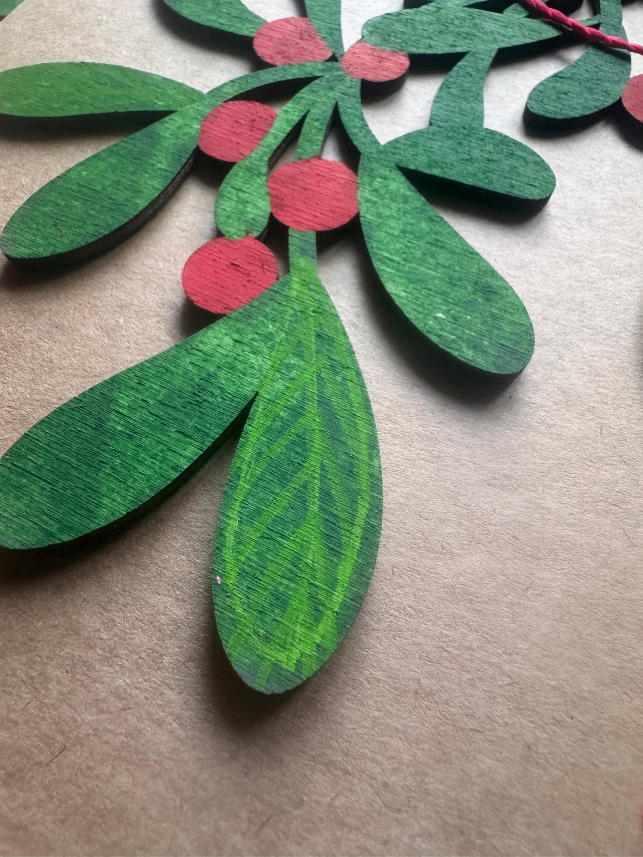 Bring a touch of festive charm to your home with this Hand Painted Plywood Mistletoe Ornament, lovingly crafted to brighten your holiday décor. Featuring vibrant green leaves and cheerful red berries, this lightweight wooden ornament adds a cozy and traditional feel to Christmas trees, mantels, doorways, or gift wrapping.