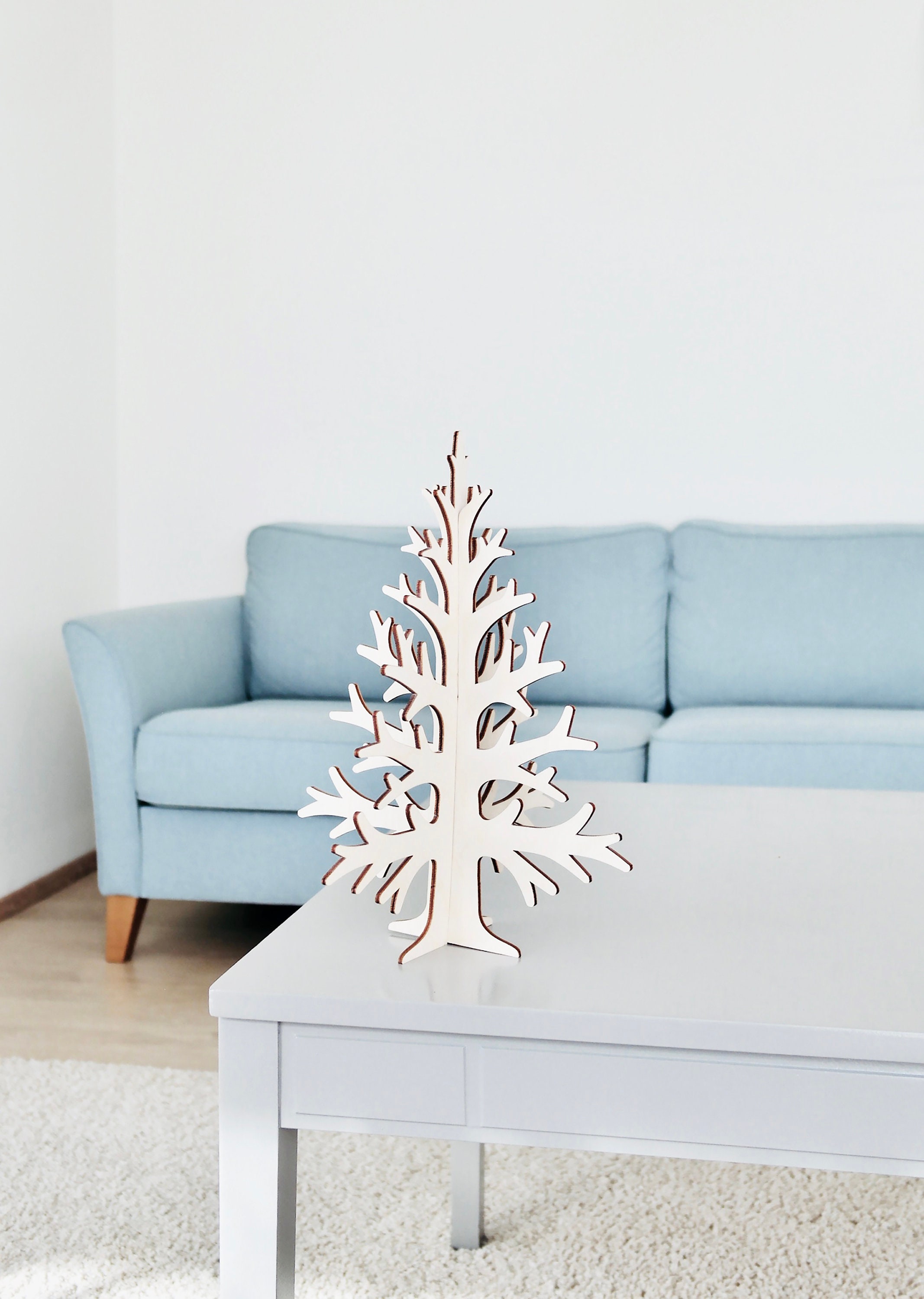 “RECYCLED cardboard” means that the details of the trees are literally cut out from pre-used cardboard containers. You can see the fragments of printed texts and/or sticker on details of the tree. Please take it as a quaintness and a sign from a long life that the material has lived before. Or just take it as a canvas for your own creation and decorate, draw or paint your tree as you wish.